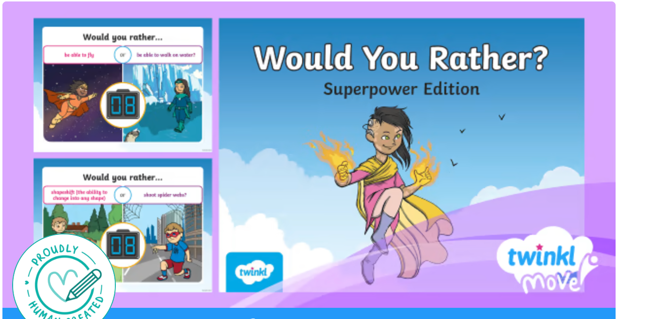 A simple yet effective game for helping children share their opinions. The 'Would You Rather?' PowerPoint game offers fun, lighthearted choices that children can answer without pressure. It is a good way to get quieter children talking and helps the group learn more about each other in a relaxed way.